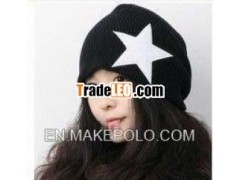 2012 hot sale, low price white pentagram hat &black knit hat pattern&smart winter hat for wo